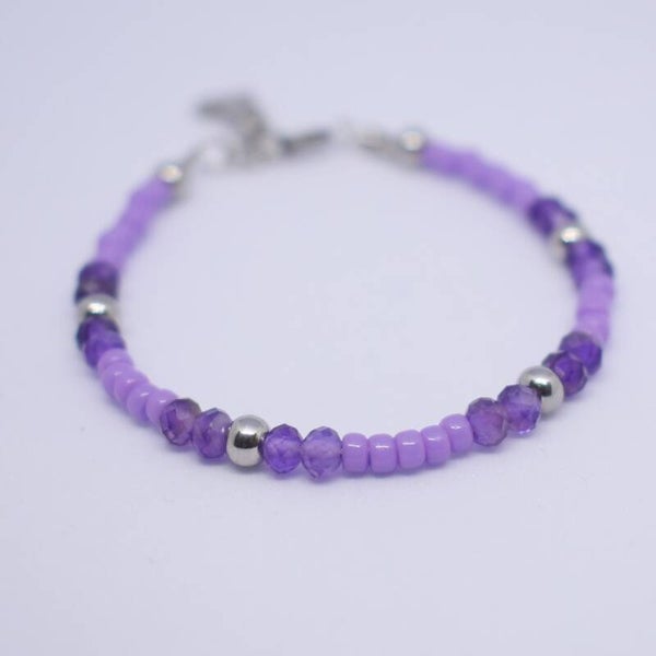 Dit lieve kinderarmbandje met amethist edelstenen en kleurrijke paarse kraaltjes is het allerleukste cadeautje wat jij je kleine meid kunt geven. Of laat haar zelf een kinderarmbandje uitzoeken en je meisje zal precies dié steen uitzoeken die perfect bij haar past.
