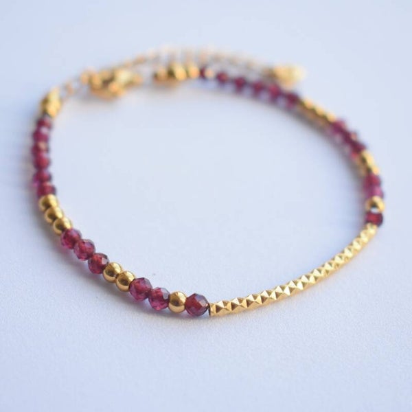 Deze betoverende bordeaux rode armband met edelstenen is mega-hip! De stainless steel kralen en de verfijnde edelsteen kralen maken de armband magisch. Geeft een extra sprankeling aan je outfit door de facet geslepen stenen. Met deze armband, straal je iedere dag opnieuw.