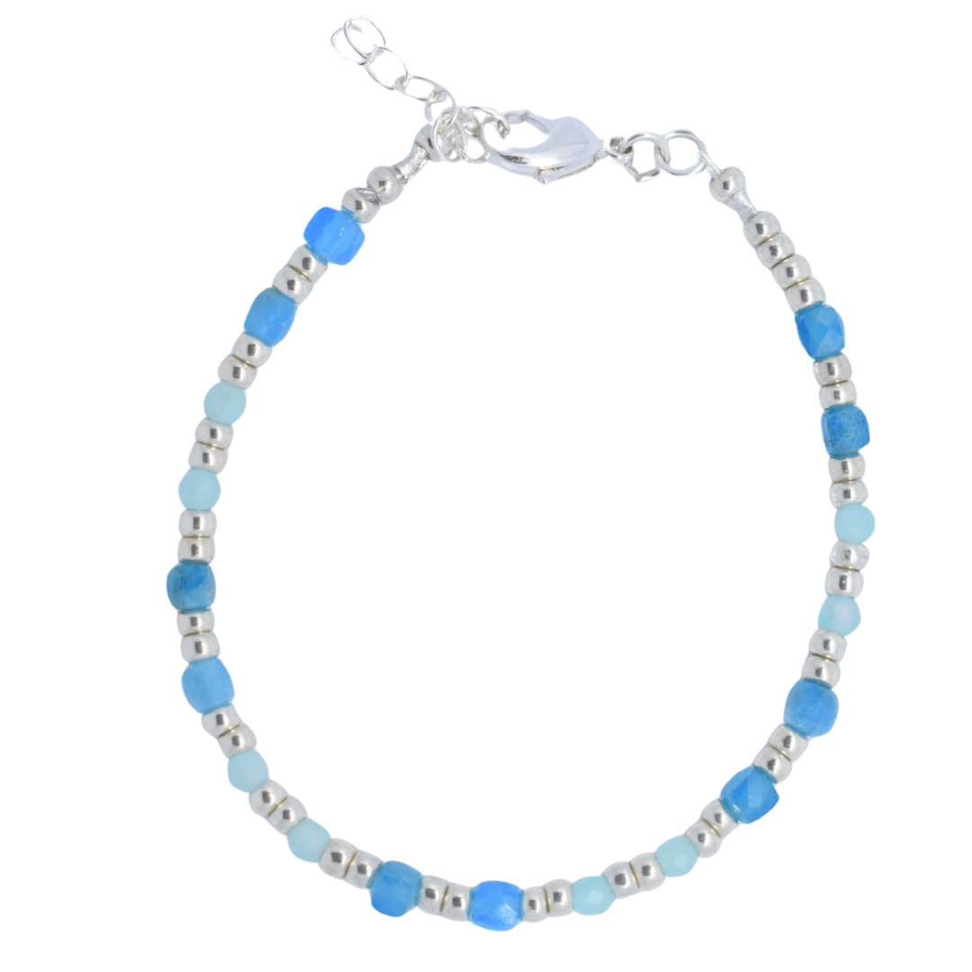 Met sprankelende blauwe edelstenen apatiet en amazoniet gecombineerd met sterling 925 zilveren kralen steel jij zeker weten de show. De schittering van de facet geslepen edelstenen maakt je look helemaal af.