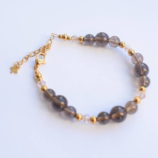 Deze armband met bruine edelstenen zijn favoriet! Deze gouden armband met edelstenen rookkwarts zijn een absolute must-have voor iedereen die houdt van een sprankelende en stijlvolle uitstraling.