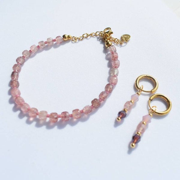 Deze prachtige roze armband met aardbeienkwarts brengt je liefde, positiviteit en balans.