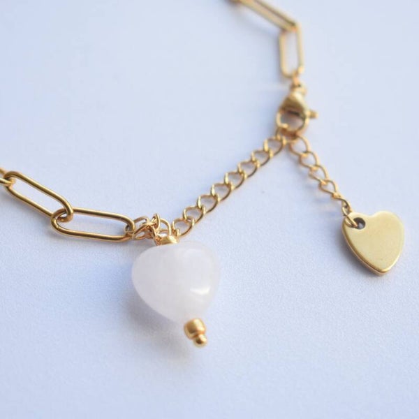Deze gouden bedelarmband met hartje is zo schattig. Een match bij je nieuwe outfit of een prachtige jurk. De gouden stainless steel schakelarmband met verfijnde hartjes zij een echte eye-catcher.